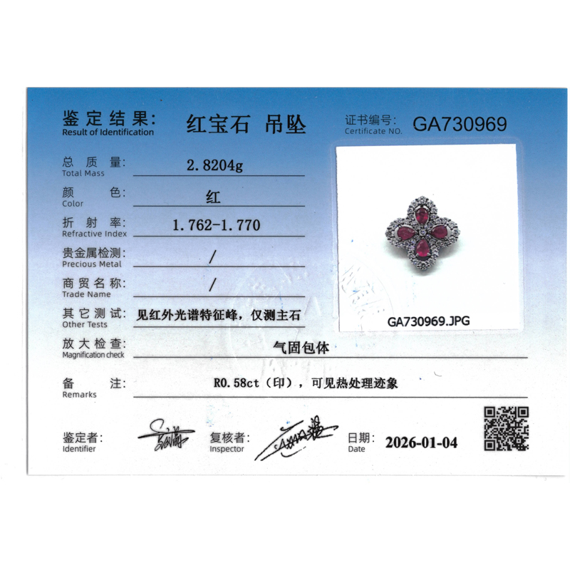 四叶草的每一瓣叶片,皆被赋予深意:以4颗珍稀梨形红宝石为主石,三爪镶嵌的璀璨光芒,恰似爱意被温柔托举。红宝石如炽热心跳,诉说此生唯一的挚爱誓言。主石梨形切割的弧线流淌着古典诗意,火彩随光影流转,仿若命运指引下不期而遇的怦然心动。