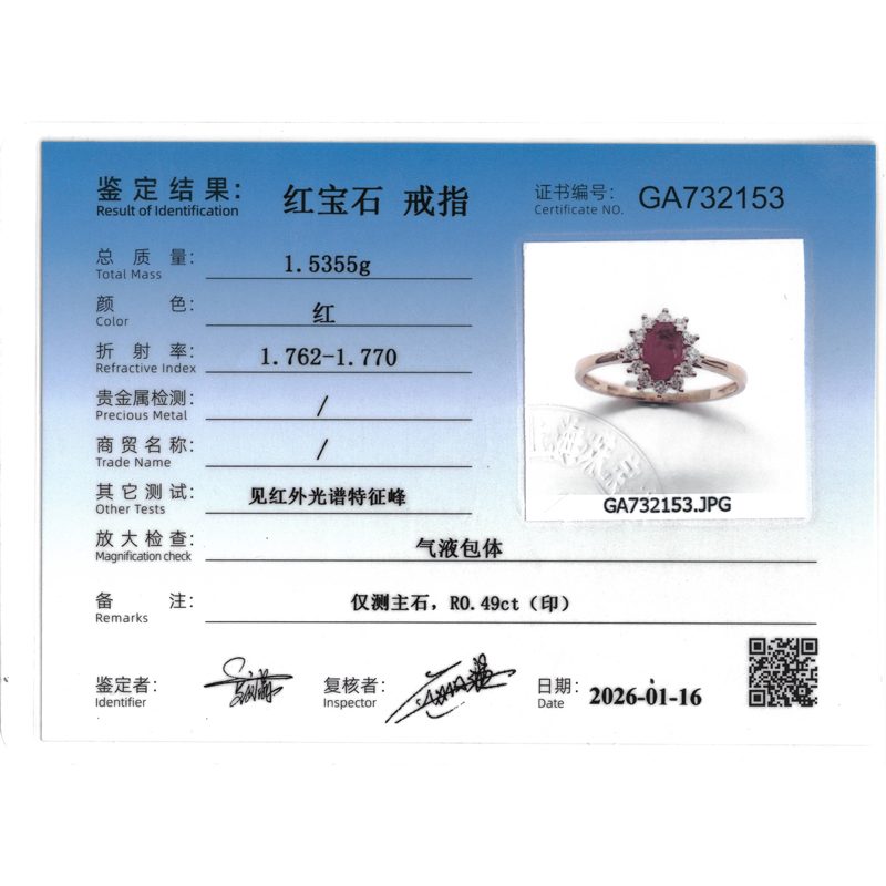 • 首饰证书号:GA732153