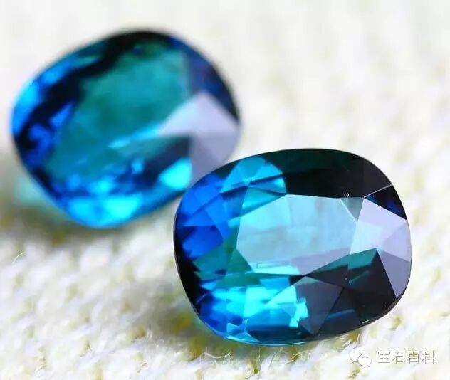 其晶体结构中虽然已有较多的铁离子被锂离子和铝离子替代,但仍由铁起主要致色作用而呈蓝色,多色性由明显到弱,呈深蓝色和浅蓝色。帕拉伊巴的蓝碧玺含有较多的Cu和Mn含量。
