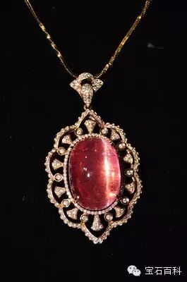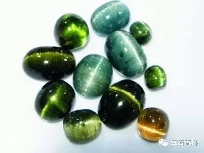 猫眼碧玺产量相对较少,收藏价值也更高。猫眼效应一般在红碧玺和绿碧玺居多。碧玺的猫眼效果是因为碧玺内部长着平行的管状包裹体,这种包体达到一定的密度,在垂直着平行包裹体的方向就会在点光源照射下有一条亮线(称为猫眼),这样的碧玺原料切磨出来才会有猫眼效果。