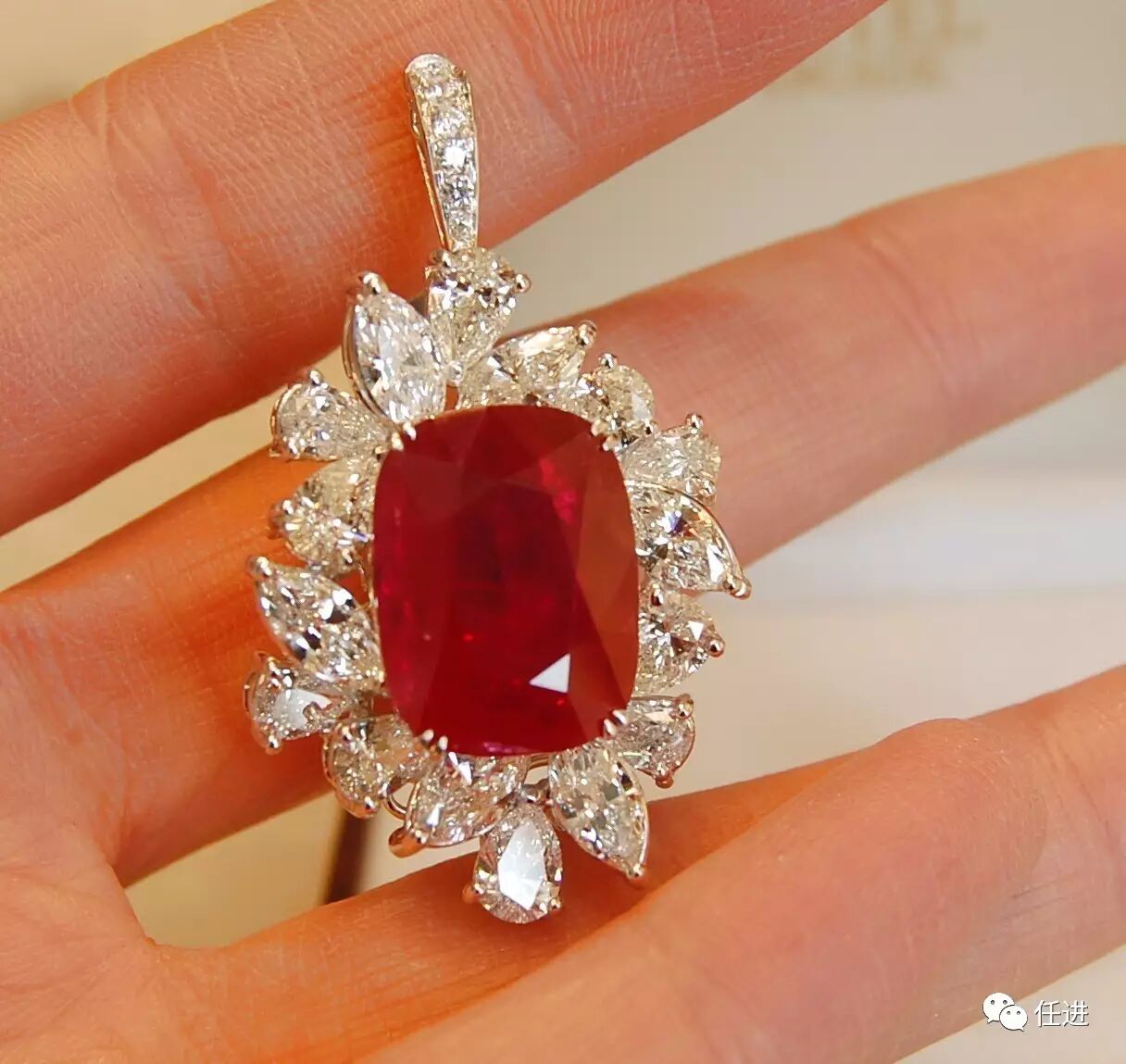 红宝石的主要成分是氧化铝,纯净的氧化铝,是无色透明的。但是无色透明的刚玉,也称为无色蓝宝石,身价不高。这时,铬元素的加入,替换了部分的铝离子,使得无色透明的刚玉变身成为红宝石。红宝石当中铬元素的替换比例大约在0.9%到4%之间,原则上铬含量越高,红色越浓。当具有了高含量的铬元素,再辅助以宝石内部包裹体等因素的配合,红宝石就能向我们展现出极致的“鸽血红”了。