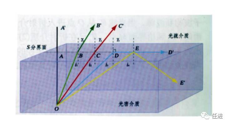 这个时候,光线就全部反射回来,又进入了宝石当中,这就是光线的全内反射。当然,不会原路反射回来,而是会遵循反射定律。