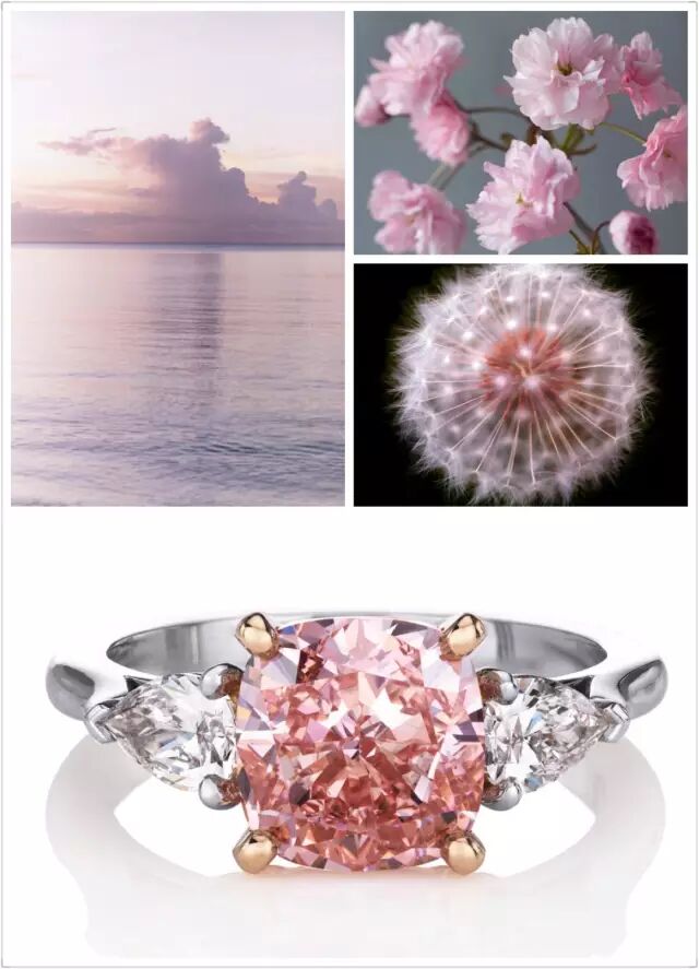 更接近红钻组合的粉色钻石呈现出的天然粉色是因为其结构发生了变化,凭借它温柔的颜色和稀少的数量,粉色钻石向来也都被行家视为珍品。