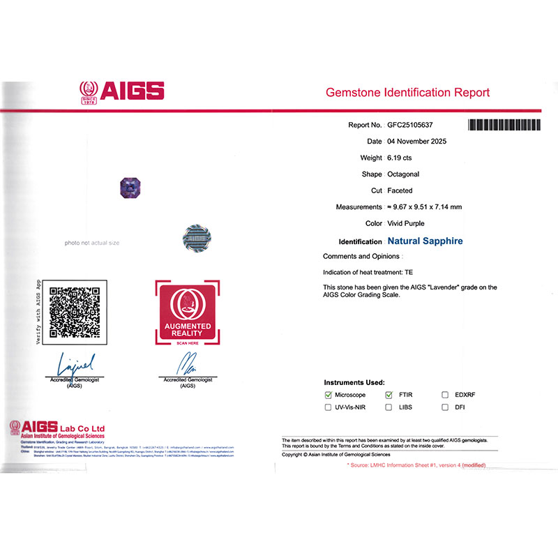 纡佩金紫,光国垂勋。位列九卿,方能戴上紫绶。紫色,自古以来都是权威的象征。 AIGS:6.19克拉无烧彩色刚玉蓝宝石,蓝色 紫色 粉色3色交相辉映,彰显与众不同的品位