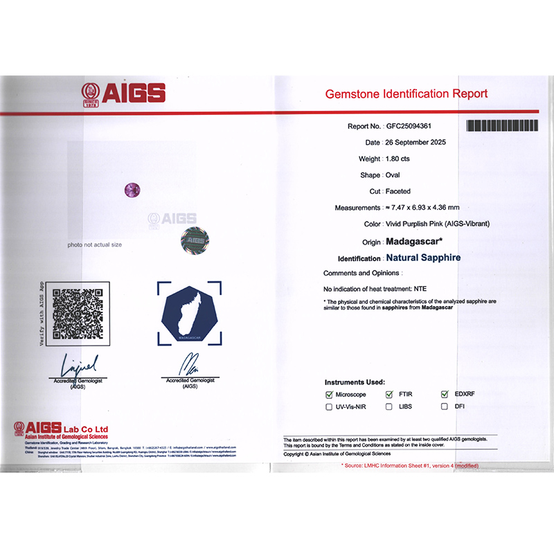 1.80克拉AIGS无烧紫粉色蓝宝石