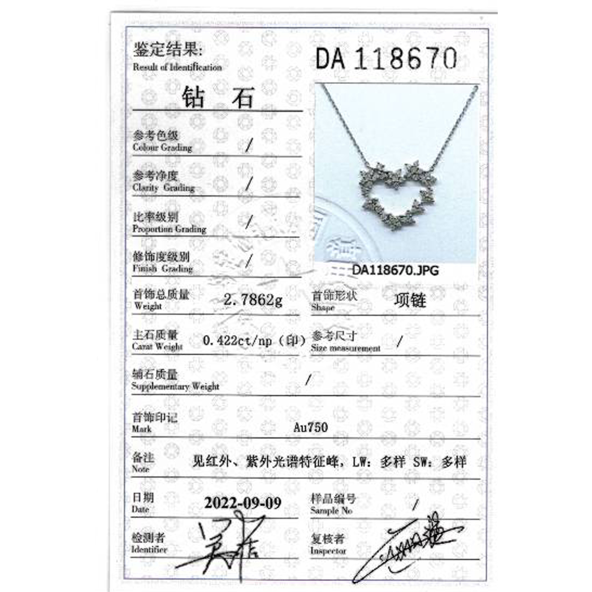 • 首饰证书号:DA118670