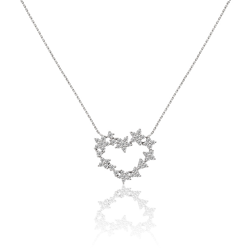 18K金钻石项坠爱心花环