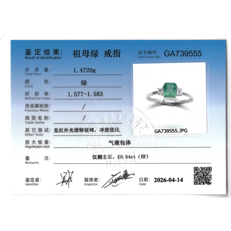 • 首饰证书号:GA739555