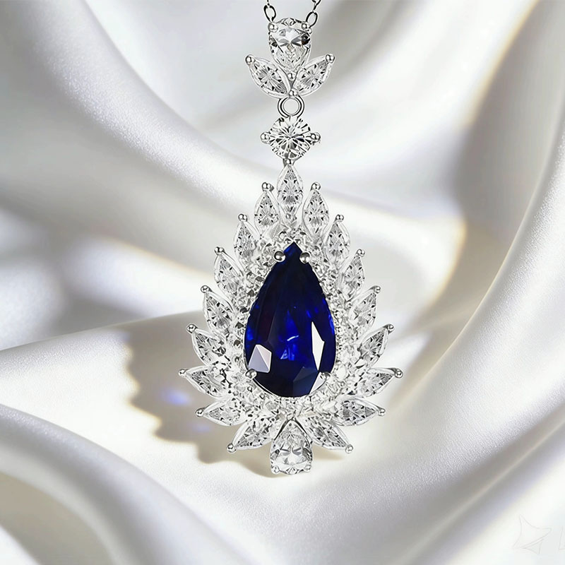 铂金2.1克拉孔雀蓝蓝宝石钻石吊坠
