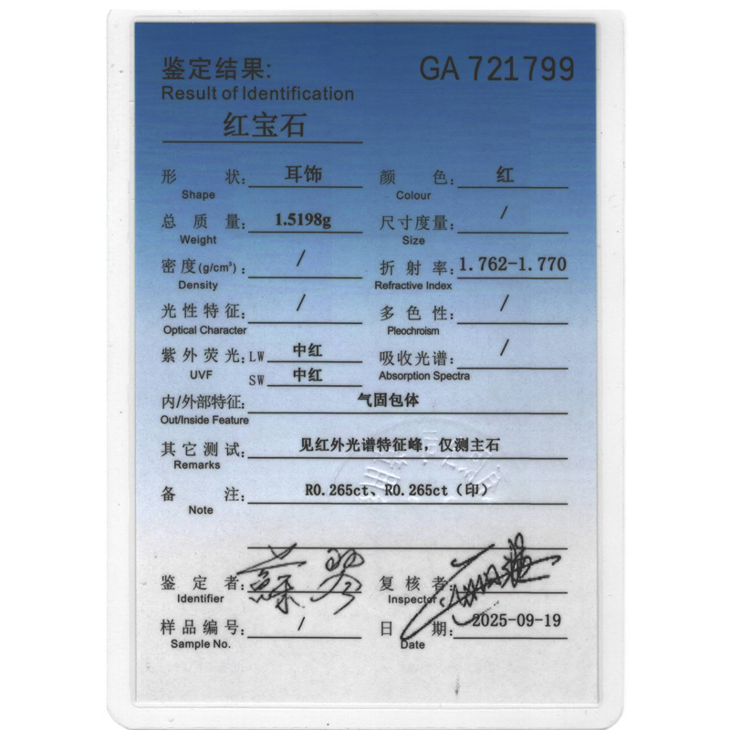 天然红宝石钻石耳钉 *** 1 ¥8320 2025-10-01 19:42:45 成交