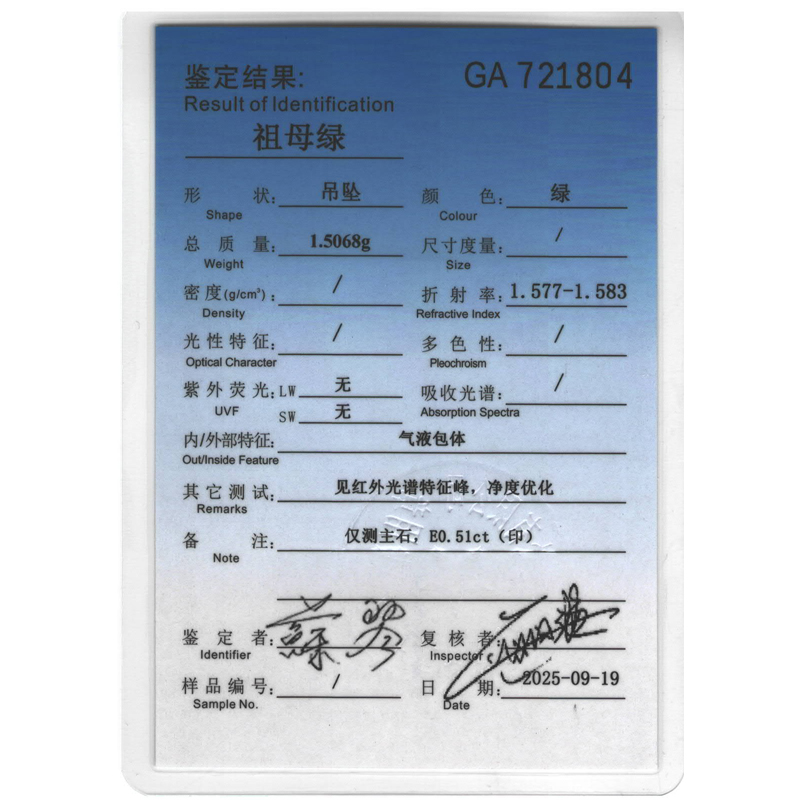 18K金祖母绿钻石吊坠 *** 1 ¥11185 2025-10-01 20:01:43 成交