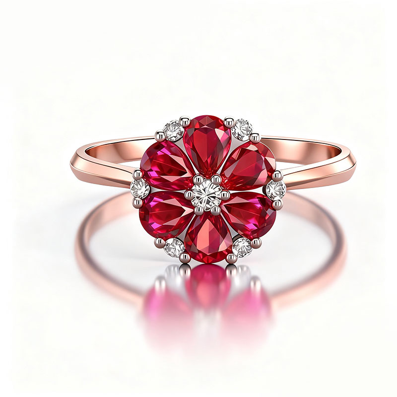 红色是中国人认为喜庆的颜色,代表着爱、力量和热情,也象征着生活的红火。在迷人的彩色宝石王国里,红宝石当仁不让的被公认为宝石之王。天然红宝石大多来自亚洲(缅甸、泰国和斯里兰卡)、非洲和澳大利亚,美国蒙大拿州和南卡罗莱那州也有一点。天然红宝石非常少见珍贵,工业用红宝石都是人造的。