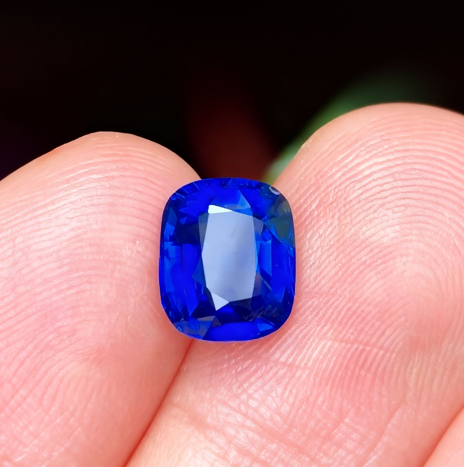 印度克什米尔蓝宝石。颜色呈矢车菊的蓝色,也就是微带紫的靛蓝色。颜色的明度大,色鲜艳。有雾状的包裹体的具乳白色反光效应。一直被誉为蓝宝石中的极品。
