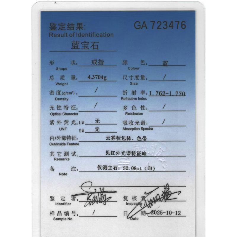 3.01克拉无烧皇家蓝蓝宝石 GRS证书