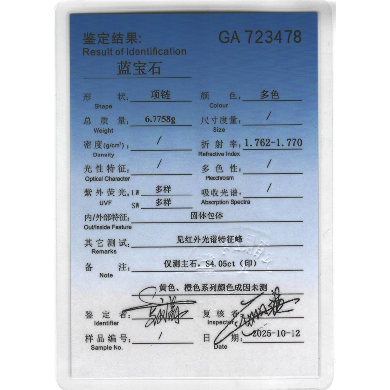 4.05克拉天然彩蓝宝钻石项链 3182112 ¥6568 上海 | 矿井 2025-10-13