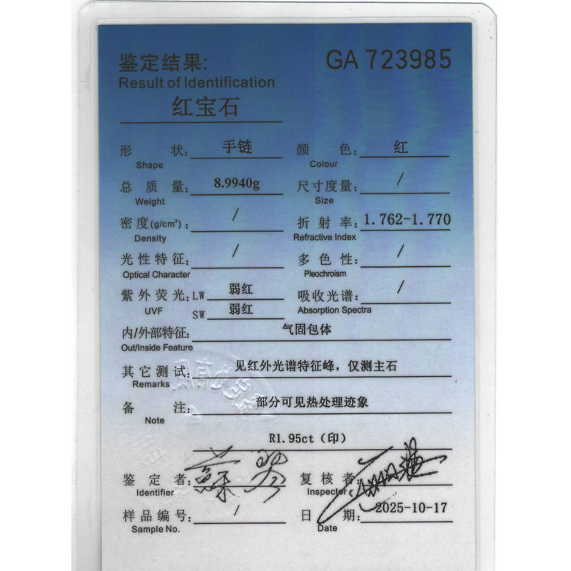• 首饰证书号:GA723985
