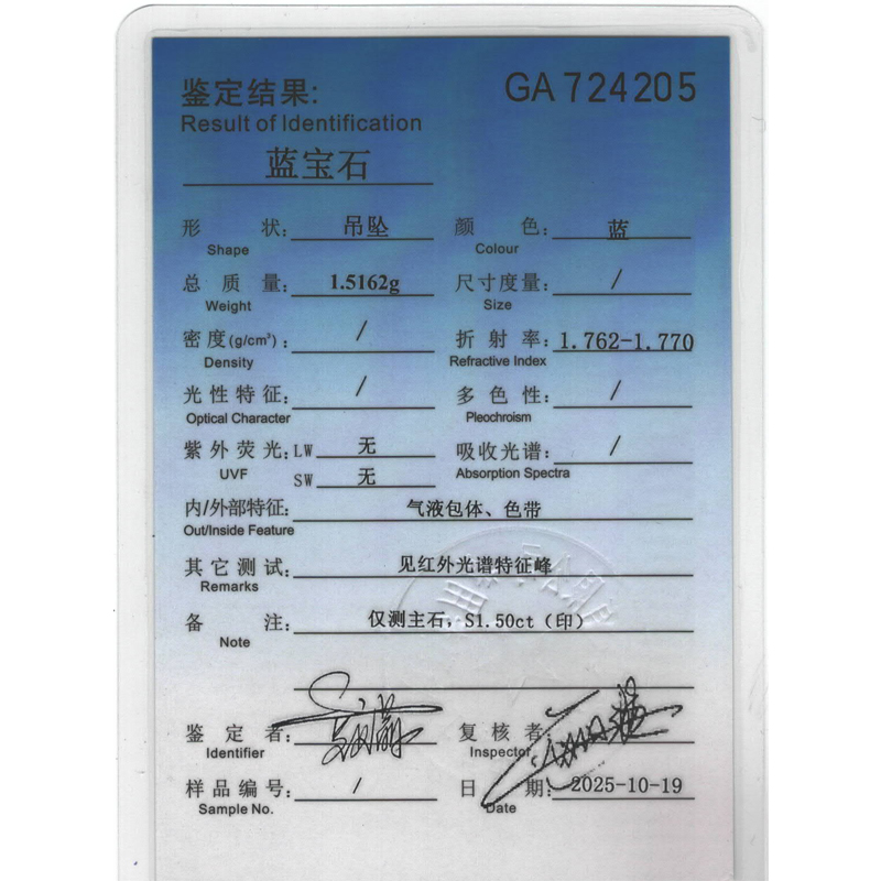 1.5克拉天然蓝宝钻石吊坠 3182194 ¥4309 上海 | 矿井 2025-10-20