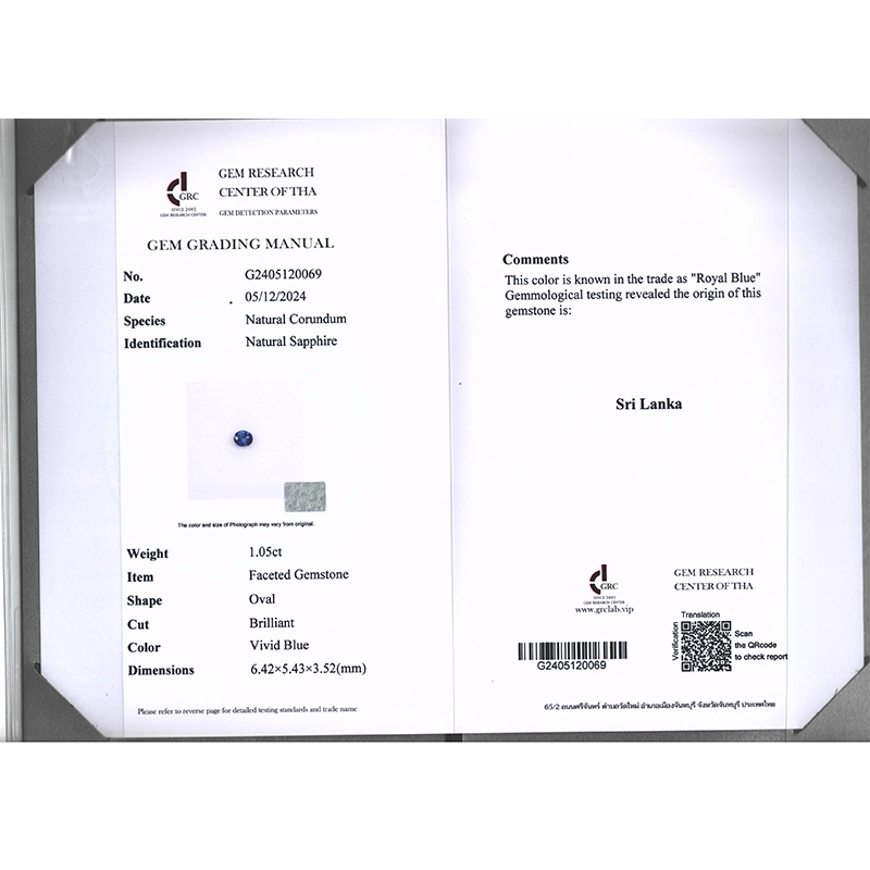 1.14克拉GRC无烧皇家蓝蓝宝石