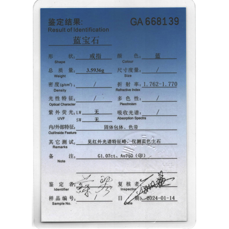 3.01克拉无烧皇家蓝蓝宝石 GRS证书