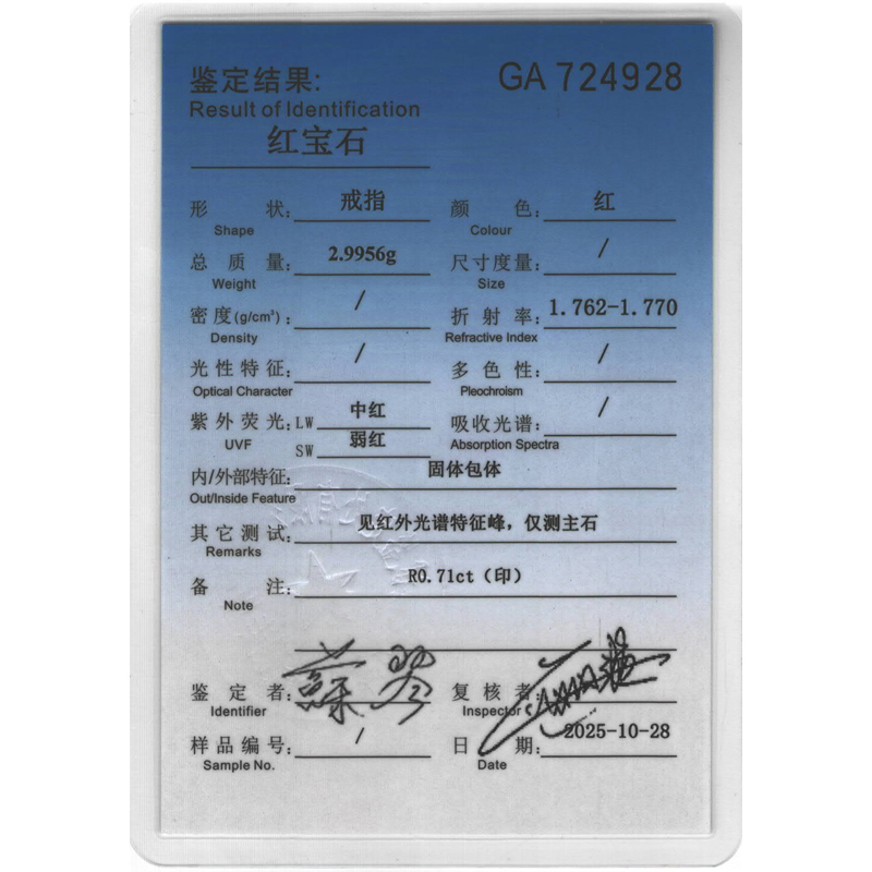 天然红宝石钻戒 3182192 ¥8539 上海 | 矿井 2025-10-20