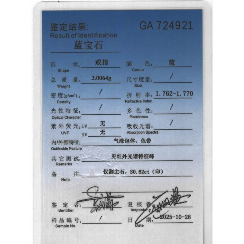 3.01克拉无烧皇家蓝蓝宝石 GRS证书