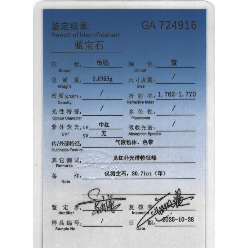 斯里兰卡蓝宝石。其包体如下:绢丝状包体,与缅甸蓝宝石特点相似,区别在于纤维细而长,可呈现六射星光;液体包体,呈不定形层状属布或呈指纹状展布;固态包体,有锆石、磷灰石、黑云母等