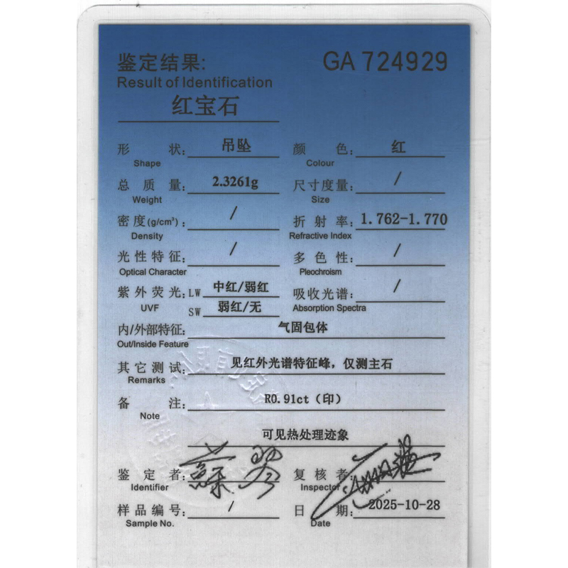 天然红宝钻石吊坠 3182434 ¥5212 上海 | 矿井 2025-10-29