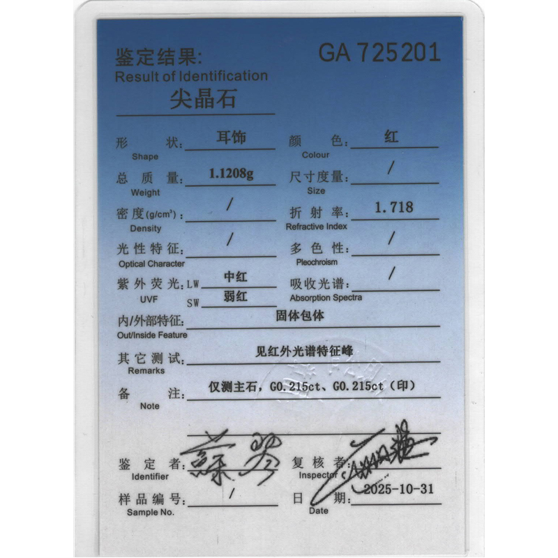 • 首饰证书号:GA725201