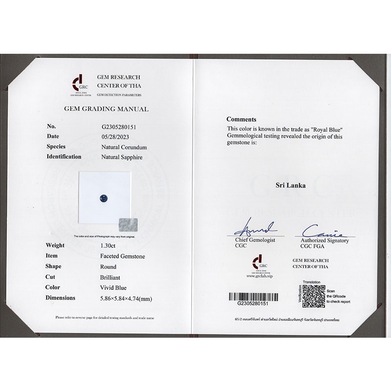 - 主石证书号:GRC G2305280151