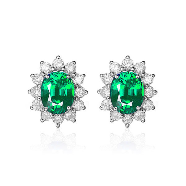 1.0克拉天然祖母绿钻石耳钉