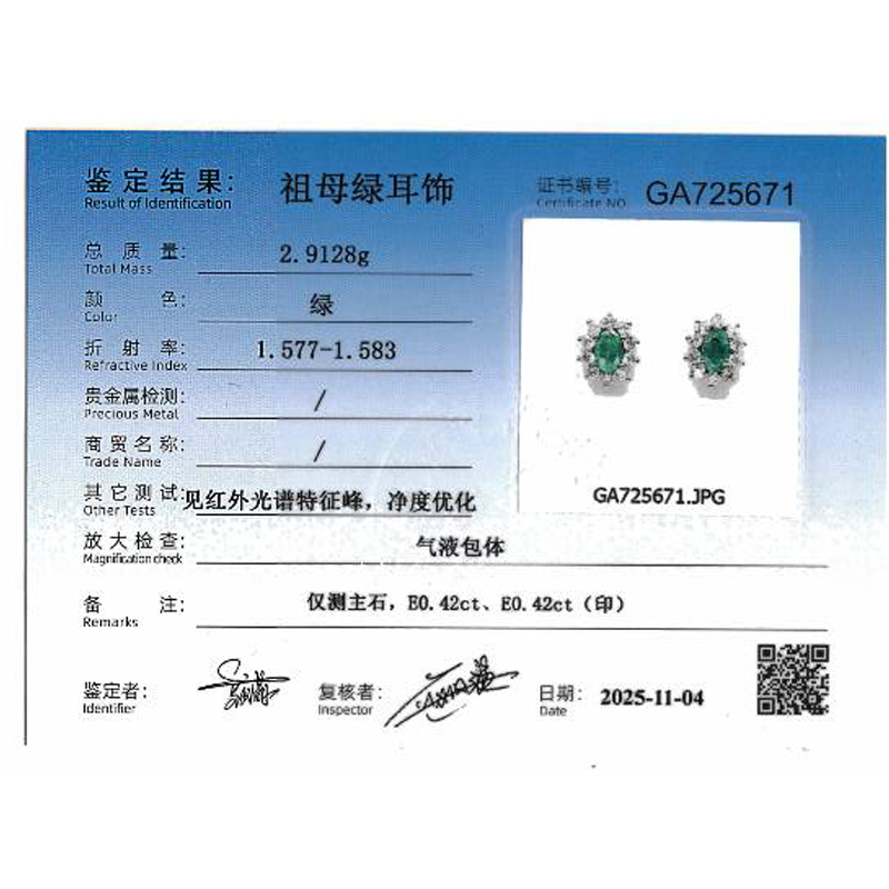 • 首饰证书号:GA725671