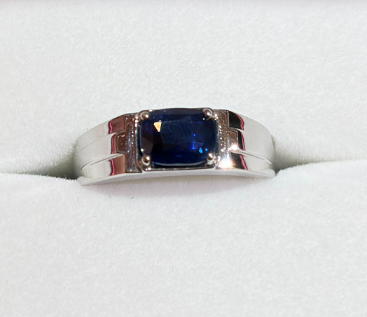 18K金粉蓝宝祖母绿钻戒