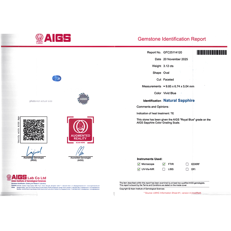 3.12克拉AIGS天然皇家蓝蓝宝石