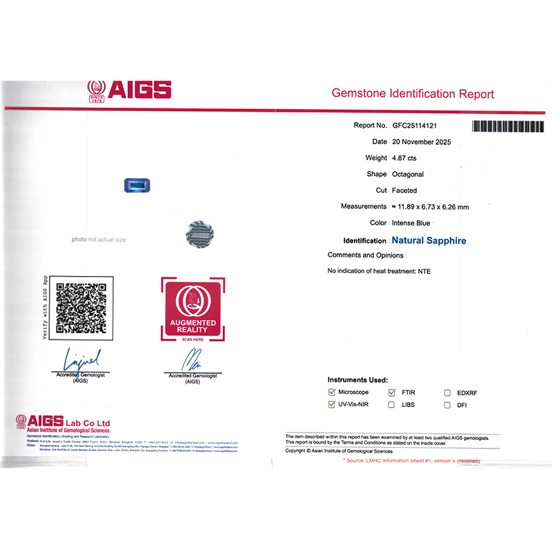 4.87克拉AIGS天然无烧蓝宝石