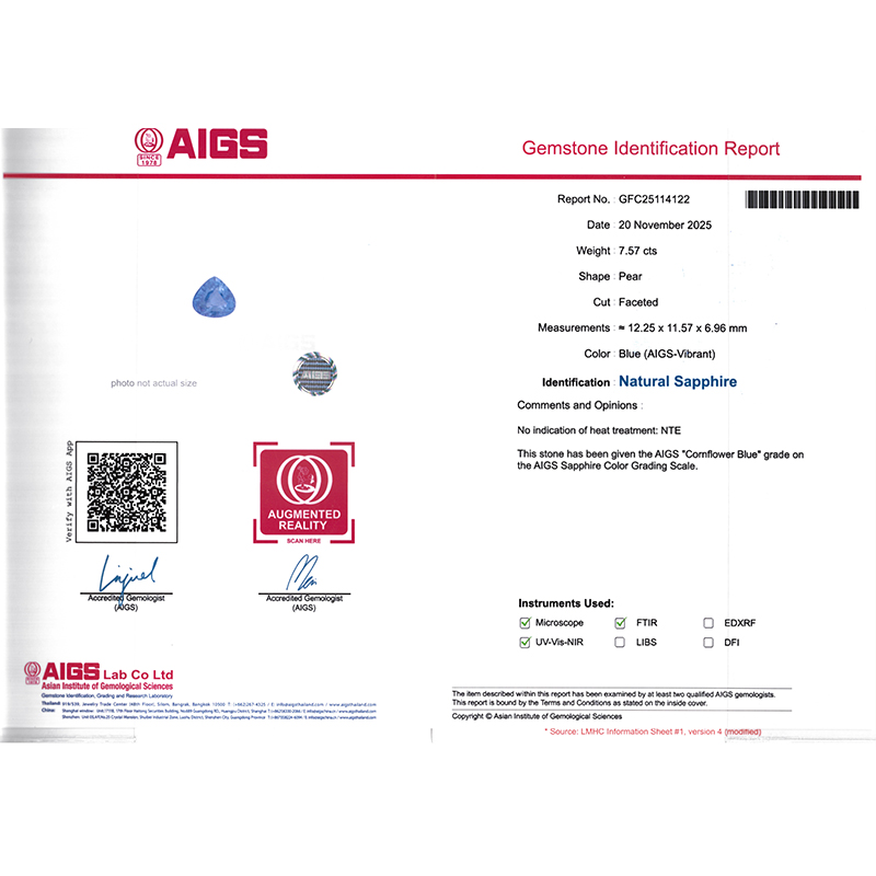 7.57克拉AIGS天然无烧矢车菊蓝宝石