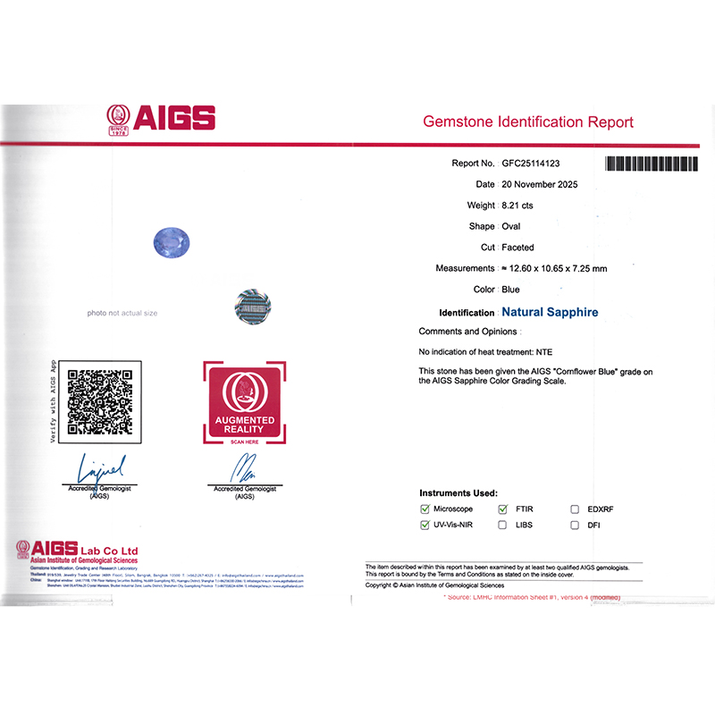 8.21克拉AIGS天然无烧矢车菊蓝宝石
