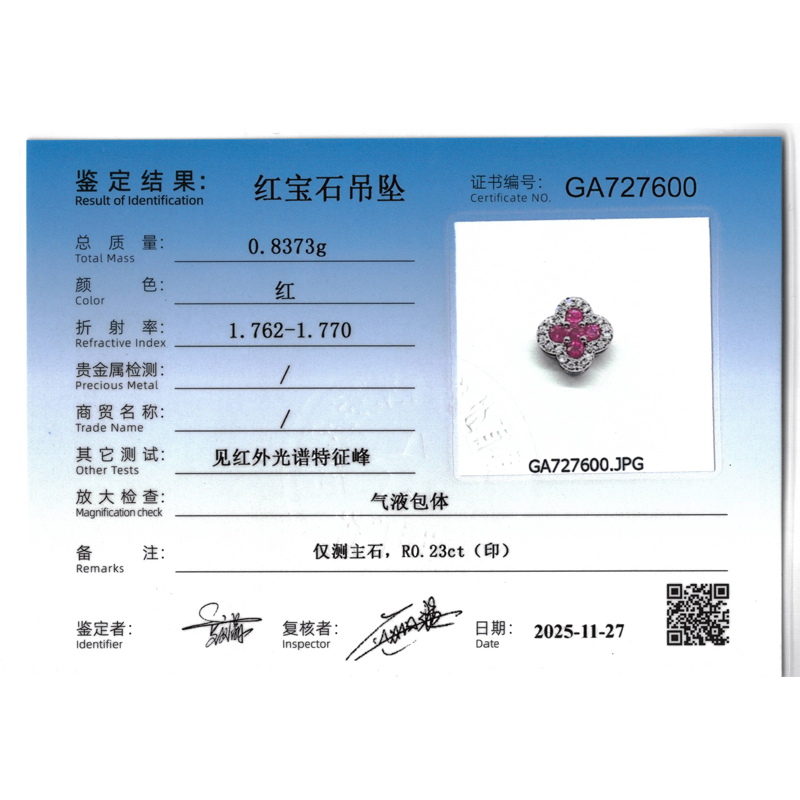 - 首饰证书号:GA727600