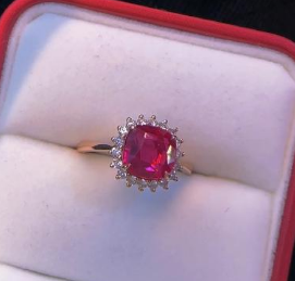 4.220克拉红宝钻石耳钉