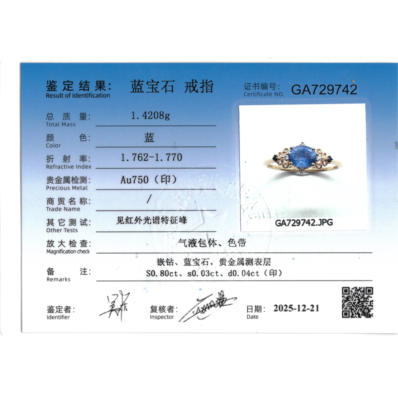 • 首饰证书号:GA729742