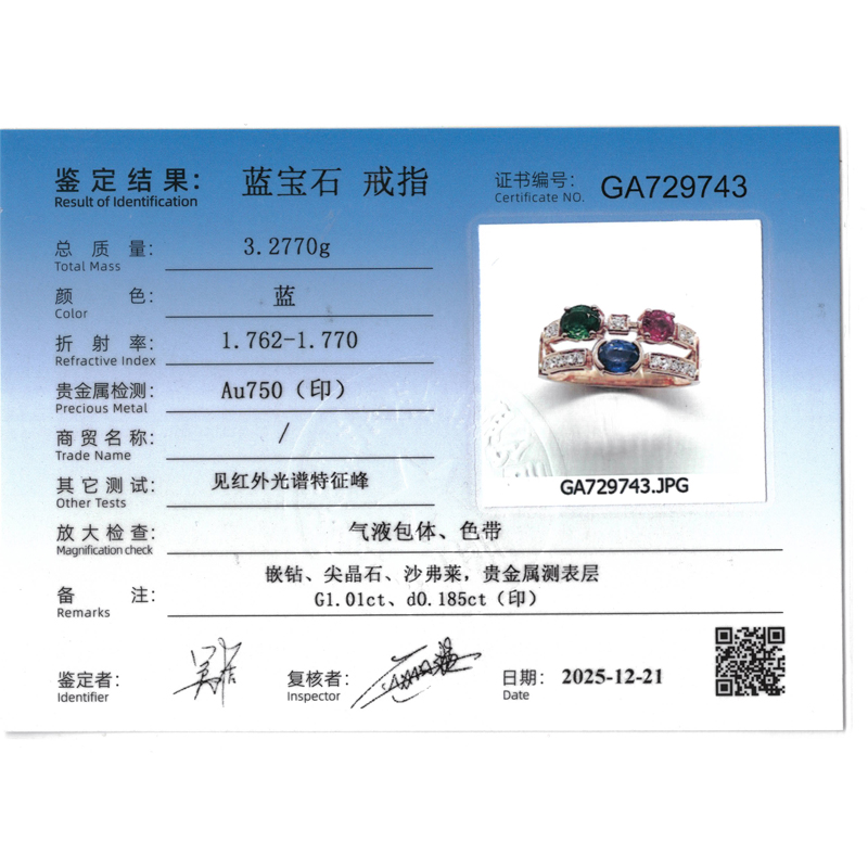 - 首饰证书号:GA729743