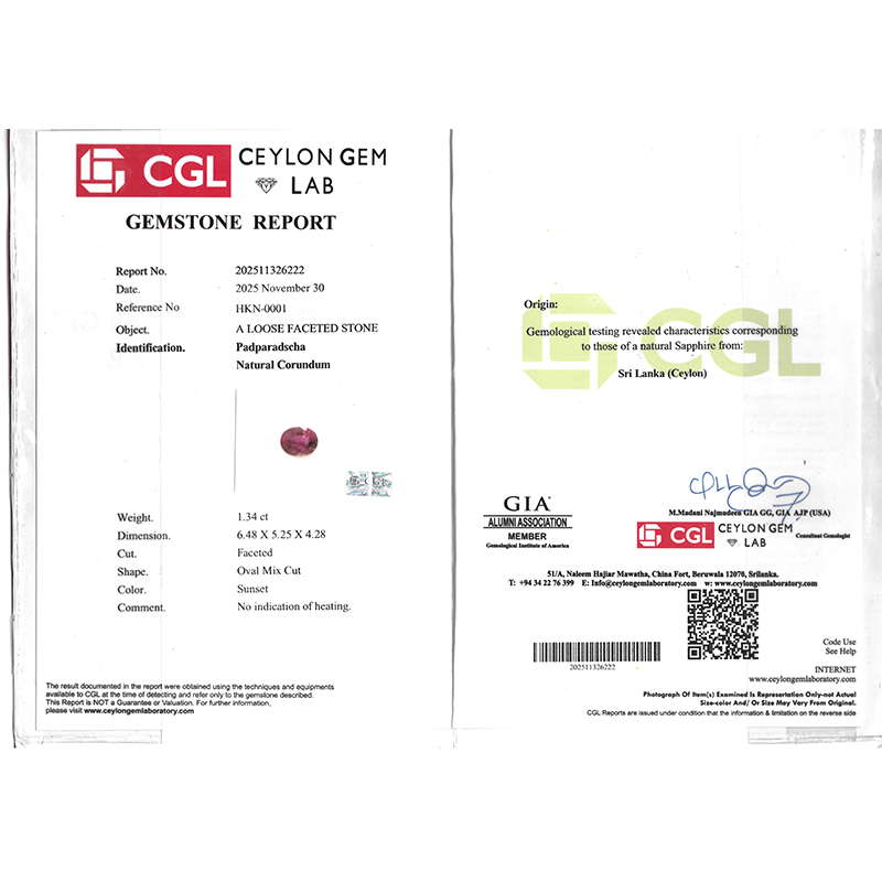1.34克拉天然无烧帕帕拉恰蓝宝石