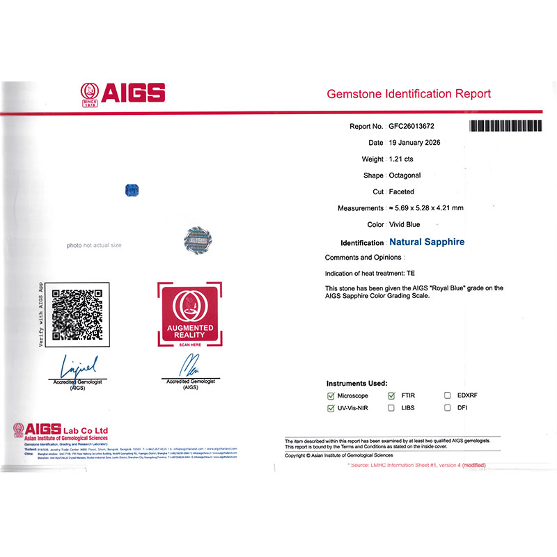 1.21克拉AIGS天然皇家蓝蓝宝石
