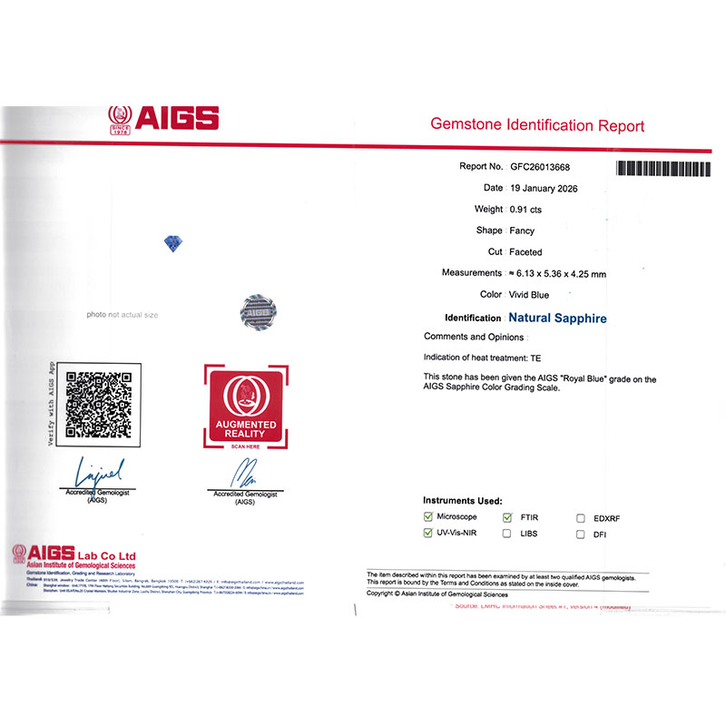 0.91克拉AIGS天然皇家蓝蓝宝石