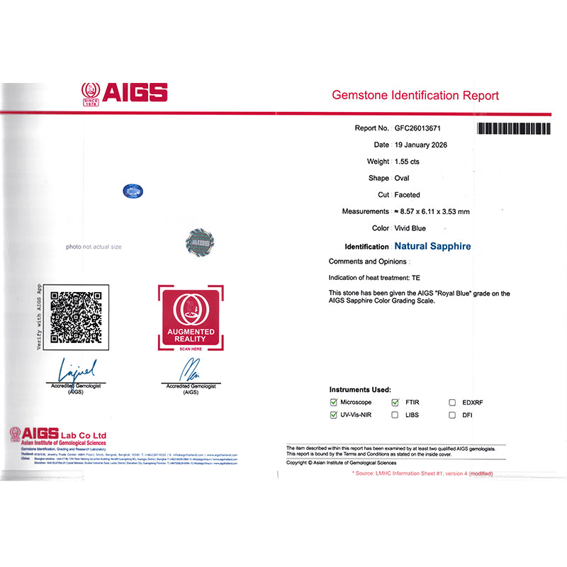 1.55克拉AIGS天然皇家蓝蓝宝石