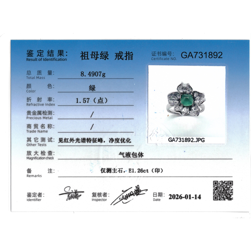 • 首饰证书号:GA731892