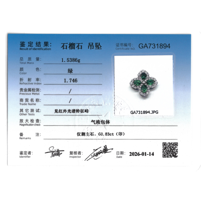 18K金尖晶石钻石吊坠