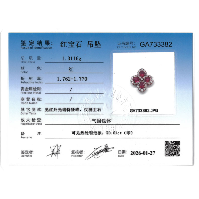 - 首饰证书号:GA733382