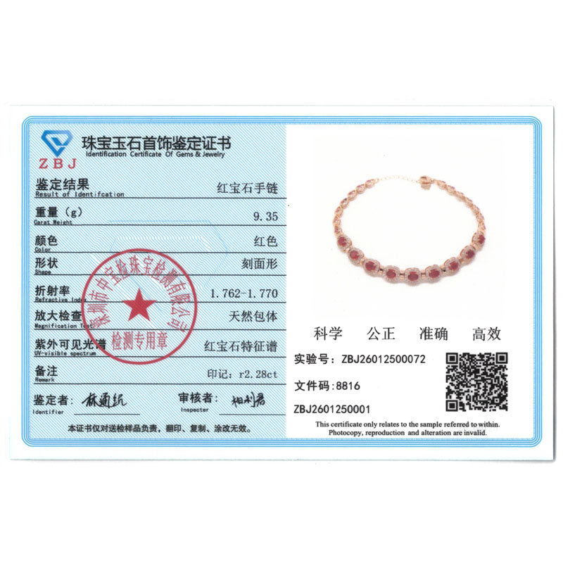 • 12.65克拉缅甸鸽血红宝钻石手链