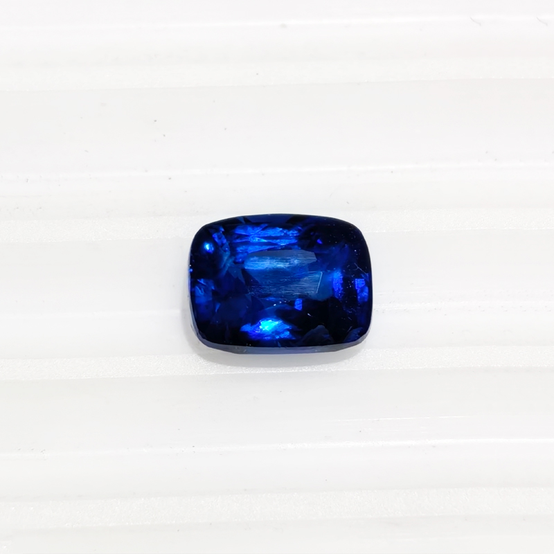 印度克什米尔蓝宝石。颜色呈矢车菊的蓝色,也就是微带紫的靛蓝色。颜色的明度大,色鲜艳。有雾状的包裹体的具乳白色反光效应。一直被誉为蓝宝石中的极品。