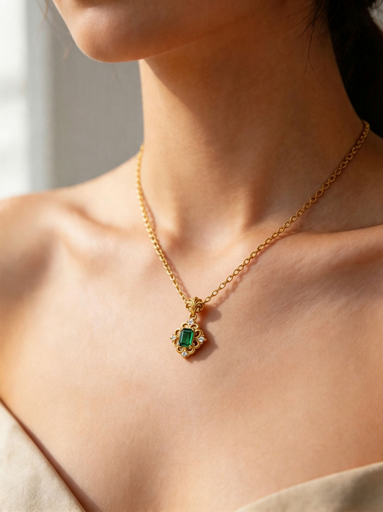 真正优质的祖母绿非常稀有,评价一颗祖母绿的首要因素是颜色,其次是净度、重量、切工等。祖母绿迷人的绿色是由于含有铬或钒元素造成的,不同的地区所产的祖母绿色调会有一些细微差别,而这些差别则造成价格的差异。美国宝石学院(GIA)的评价认为:中等色调、高浓度且纯净的绿色的祖母绿为最佳。就市场上来说,绿中微带蓝的祖母绿最受欢迎。一粒拥有鲜绿色彩的祖母绿价格可以比一粒浅绿的祖母绿高出100倍。灰色或咖啡色调对祖母绿的价格则会有负面影响,而一颗颜色净度皆佳的祖母绿价值可以超过同等重量的钻石。